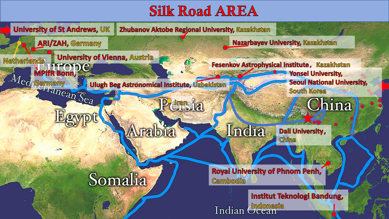 Silk Road Astronomy Research and Education Alliance (Silk Road AREA) is a global platform for international cooperation in astronomical research and education. Initiated by Prof. Zhongmu Li of Dali University, it was founded on June 24, 2025, by 10 founding countries including China, Germany, the Republic of Korea, Kazakhstan, the Netherlands, Uzbekistan, Indonesia, Cambodia, the United Kingdom and Austria. Co-chaired by Prof. Zhongmu Li (China) and Prof. Rainer Spurzem (Germany), its permanent secretariat is based at Dali University, with the Institute of Astronomy and Information undertaking daily operations.